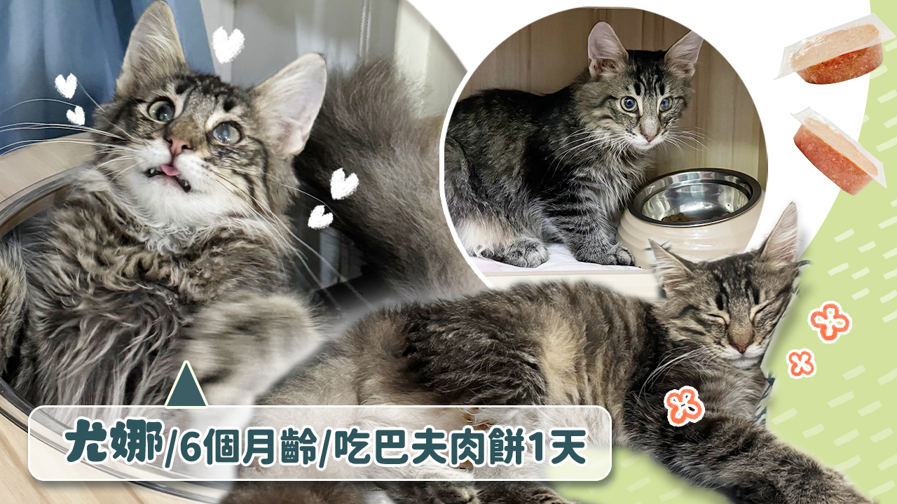 平常尤娜吃飼料或罐頭都要吃很久才會吃完,但是只要一看到肉餅拿出來了,就立馬飛奔過來,生肉餅馬上嗑光!